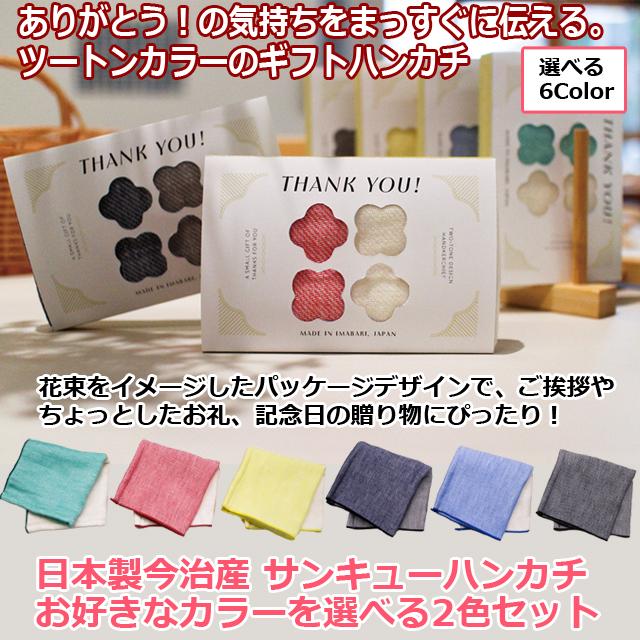 日本製今治産 サンキューハンカチお好きなカラーを選べる2色セット ギフトパッケージ ツートンカラー ギフトハンカチ 卒業記念 お礼