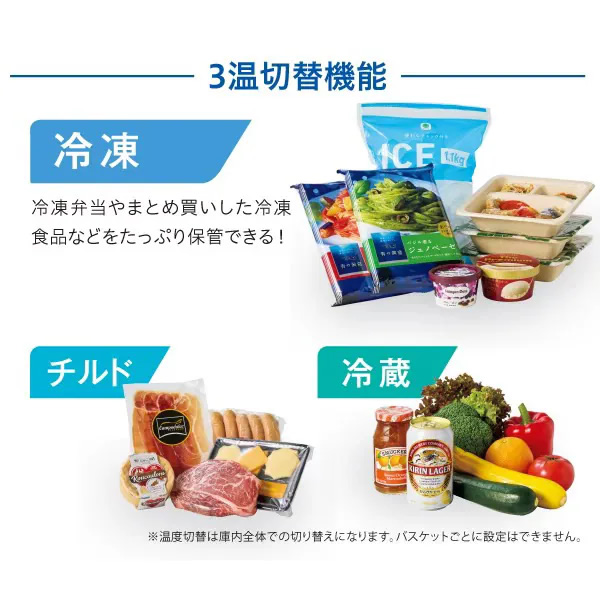 ※1:温度切替は庫内全体での切り替えになります。バスケットごとに設定はできません。