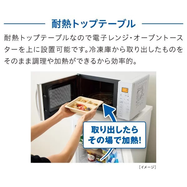 ●耐熱トップテーブルで電子レンジなど置ける