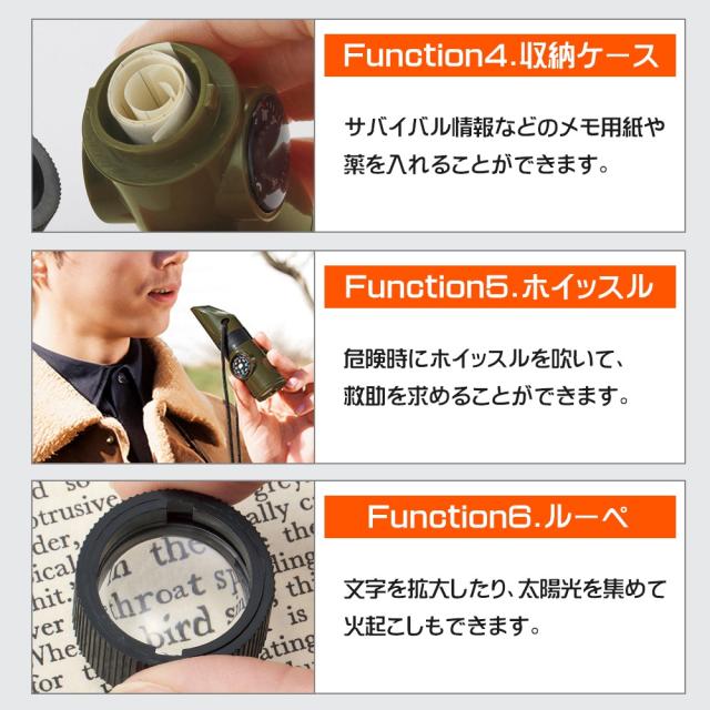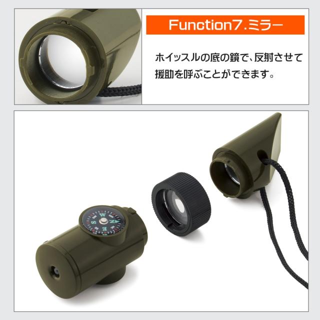 送料無料 !( メール便 ) 笛 ホイッスル 7in1 温度計 LEDライト 方位磁石 ルーペ 鏡 ストラップ付き コンパクト【 防災グッズ アウトドア 登山 キャンプ 持ち歩き 携帯 災害時 緊急時 備え ポイント消化 1000円 以下 の商品 新着!】 送料込 5M◇ 多機能ホイッスル