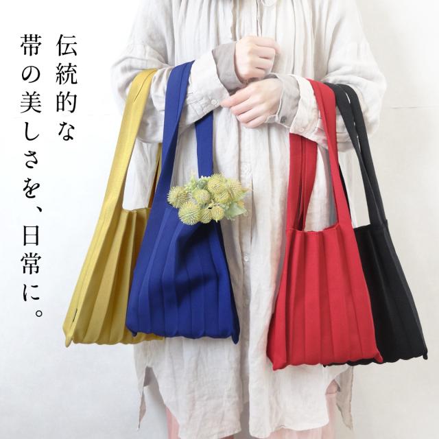 特徴 伝統的な帯の美しさを、日常に。国内の浴衣帯工場が作る、プリーツニットバッグ。浴衣帯を作っている工場で、ニット生地の製造から縫製まで一点一点丁寧につくられた、日本製のプリーツニットバッグ。プリーツのラインで折り畳めるので、コンパクトになり、サブバッグとしても持ち歩きやすくて重宝します。鮮やかなカラーと個性的なデザインが、コーデのアクセントになってくれます。