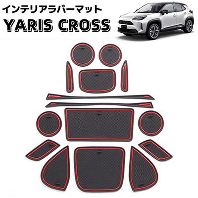 Yaris Cross ヤリスクロス インテリアラバーマット 車種専用設計 ドアポケットマット ノンスリップマット フロアマット ゴム 内装パーツ 耐久性 防水 汚れ防止 騒音防止 車の滑り止め アクセサリー 保護カバー 15ピース ブラック×レッド car-63-01