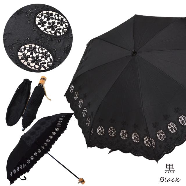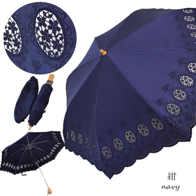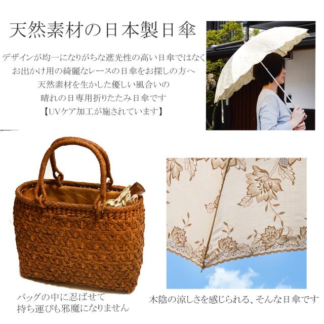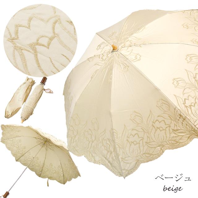 傘全体と縁にそって刺繍が施されており、清楚で上品な柄は日があたるとさらに美しいです