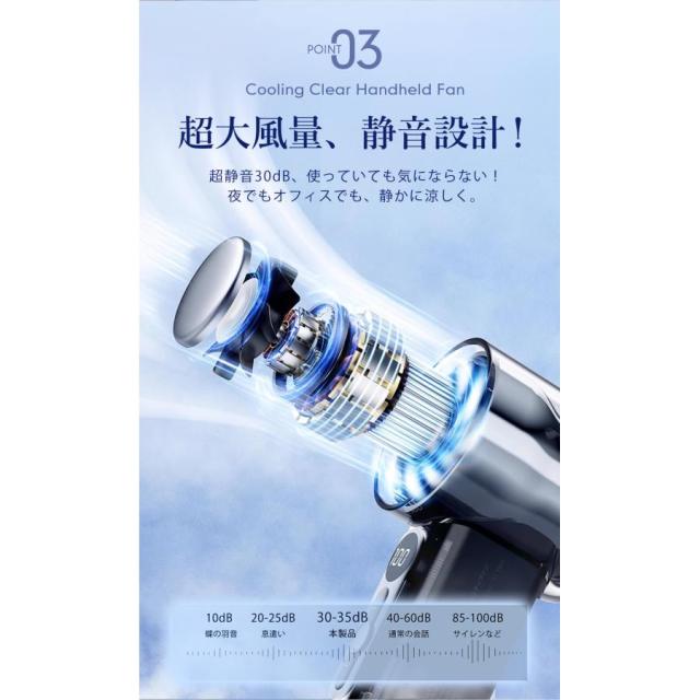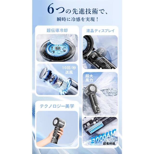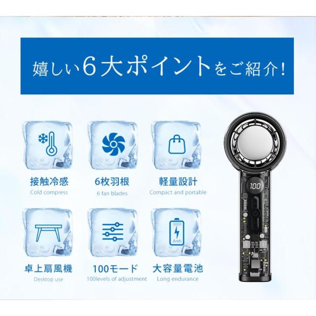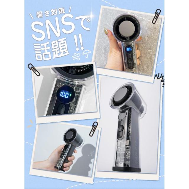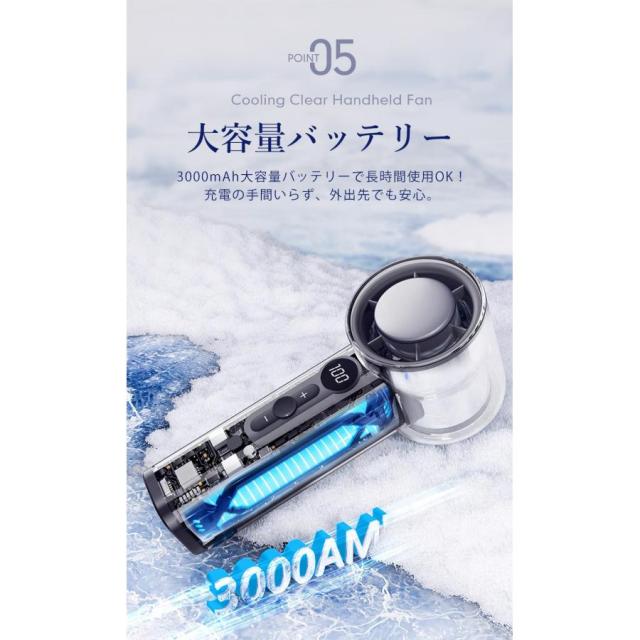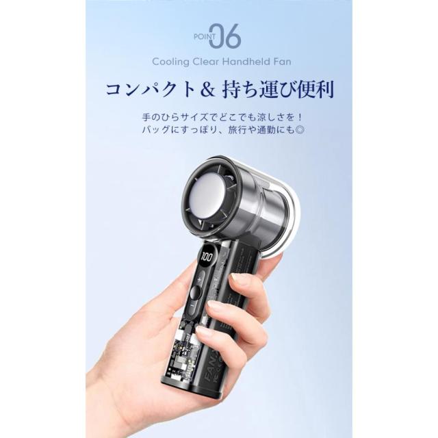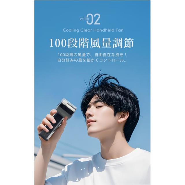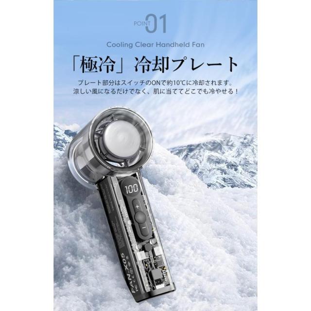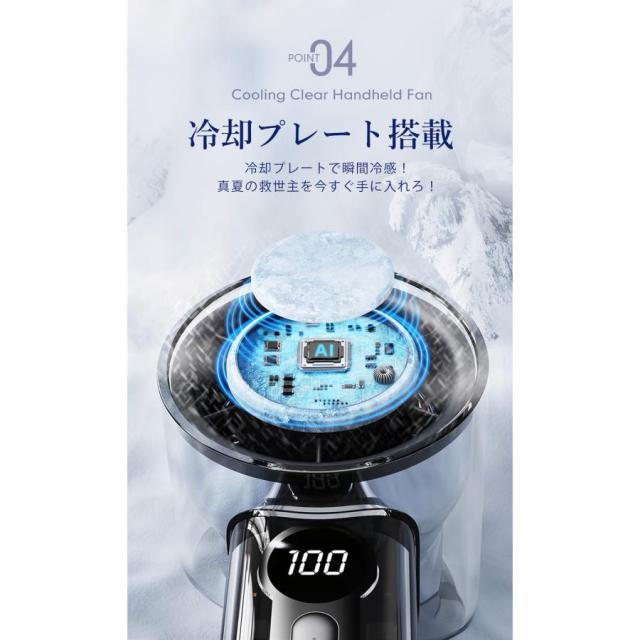 クリアハンディファン 冷却プレート ブラック 2025 大風量 卓上 軽量 手持ち 扇風機 通勤 持ち運び コンパクト アウトドア 花火大会 スポーツ観戦 暑さ対策