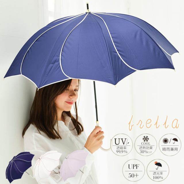 日傘 長傘 遮光率100% ロング UVフレラ 花びら 50cm 晴雨兼用 912-033 UPF50 軽量 完全遮光 ブラックコーティング加工 母の日ギフト敬老の日