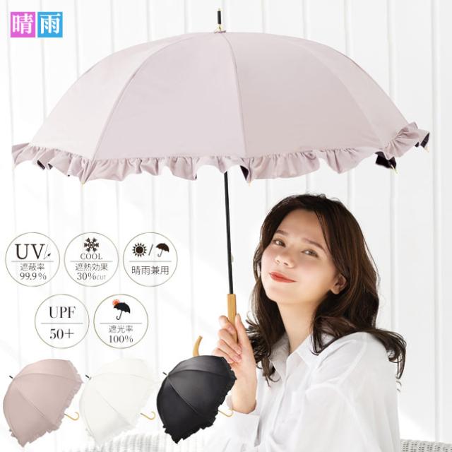 日傘 長傘 ロング UVフレンチフリルドーム 50cm 915-063 晴雨兼用 UPF50 軽量 完全遮光 ブラックコーティング加工 母の日ギフト敬老の日