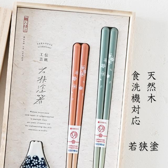 若狭塗 桐箱入箸置付夫婦箸 富士見桜 63187 ペア ペア箸 塗り箸 食器洗浄機対応 夫婦箸 桜 富士山 敬老の日 母の日 父の日 プレゼント 実用的 古希 喜寿 ギフト 誕生日 ブランド おしゃれ 退職祝い お餞別 お祝い はし 日本製