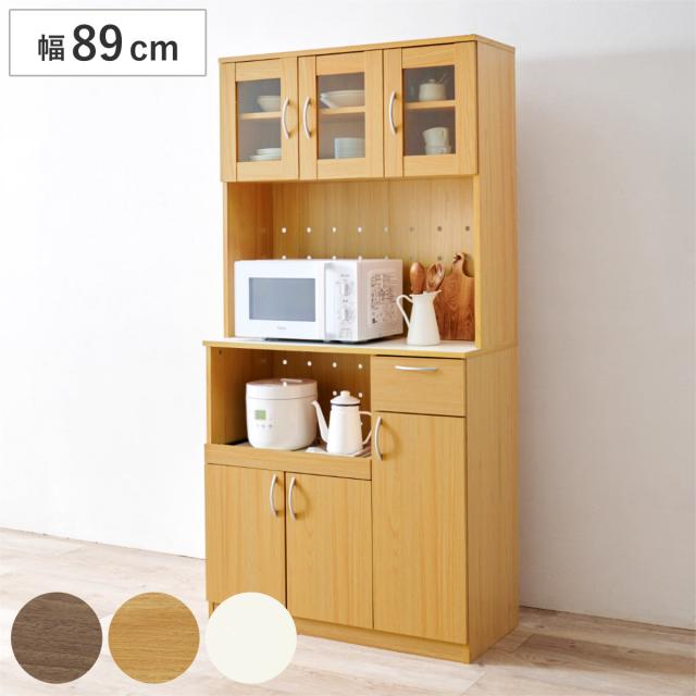 キッチンボード 幅89cm キッチン収納 大容量タイプ ( 食器棚 カップボード キッチンワゴン ラック 棚 収納 隙間 大容量 食器収納 引き出し ブラウン ナチュラル ホワイト シンプル )
