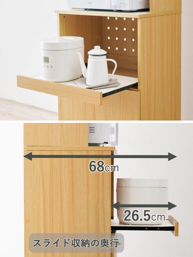 炊飯器やポットなど、蒸気の出る家電の収納にぴったりなスライド収納。必要な時だけ引き出して使えます。