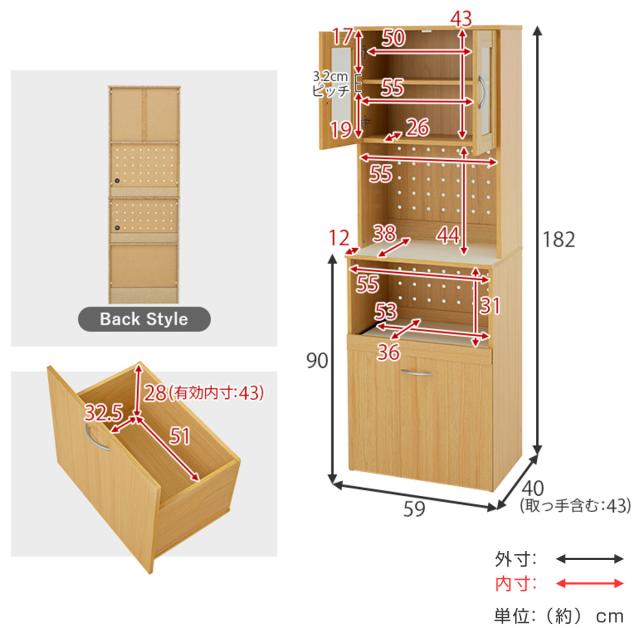 ![]() 隙間にも置ける スリムな食器棚 幅59cm | ![]() 家電と食器を1か所に キッチンボード 幅59cm | ![]() 大容量タイプ キッチンボード 幅89cm |