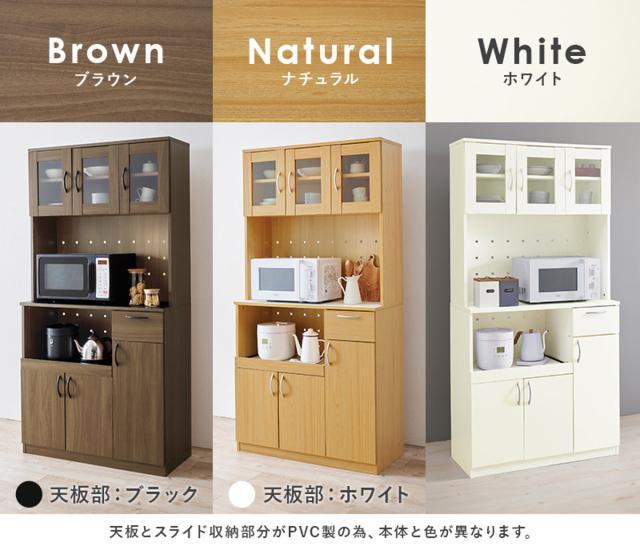 シックで重厚感のあるブラウン、温かな風合いのナチュラル、明るく清潔感のあるキッチンにぴったりなホワイトの3種類。ベーシックなカラーリングとシンプルなデザインで、どのカラーもインテリアに合わせやすいです。