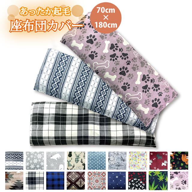 長座布団カバー 超大判 起毛 ロング 約70×180cm 両面共生地 ふわふわ あったか 北欧 アニマル 犬 dog チェック ドット 雪 しろくま 格子 タータンチェック ノルディック クッションカバー 温かい プリント おしゃれ シンプル かわいい