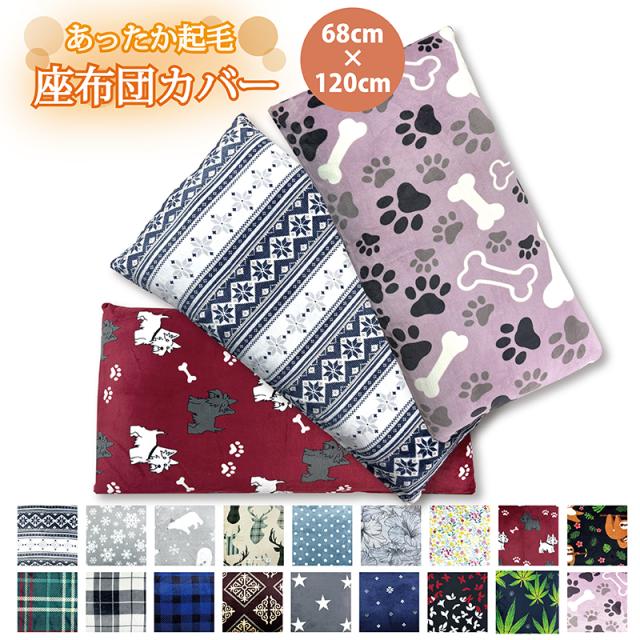 長座布団カバー 約68×120cm 大判 起毛 両面共生地 ふわふわ 北欧 アニマル 犬 dog チェック ドット 雪 しろくま 格子 タータンチェック ノルディック クッションカバー プリント おしゃれ シンプル かわいい