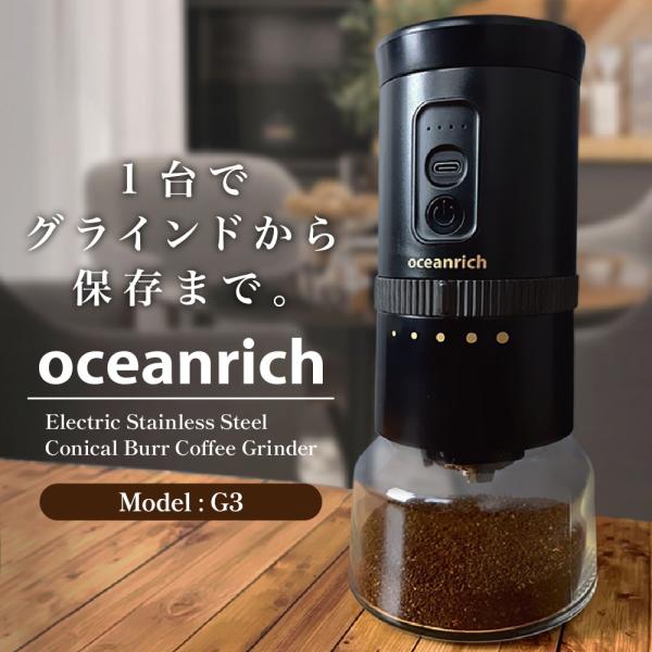電動コーヒーミル oceanrich G3 充電式 ステンレス製刃 Type-C コードレス 電動ミル オーシャンリッチ UQ-ORG3CBK