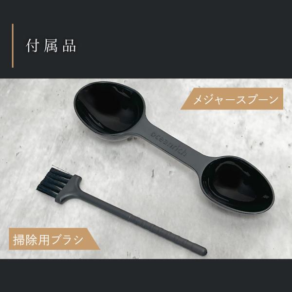 豆容器(ホッパー)には30gの豆が入ります。濃いめのコーヒーがお好きな方だと約2杯分、一般的な濃さなら約3杯分の豆量になります。
