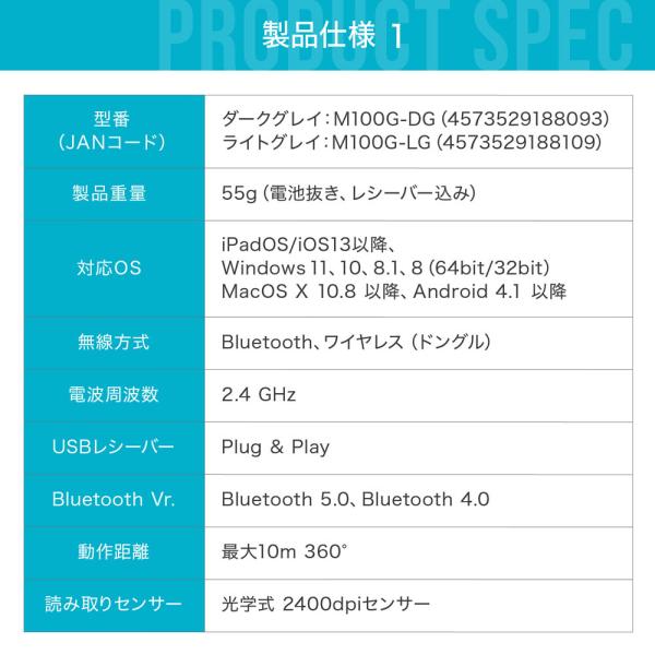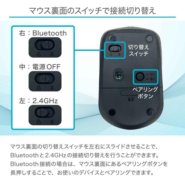 M100Gは、Bluetooth、もしくは2.4GHzワイヤレス接続に対応しています。