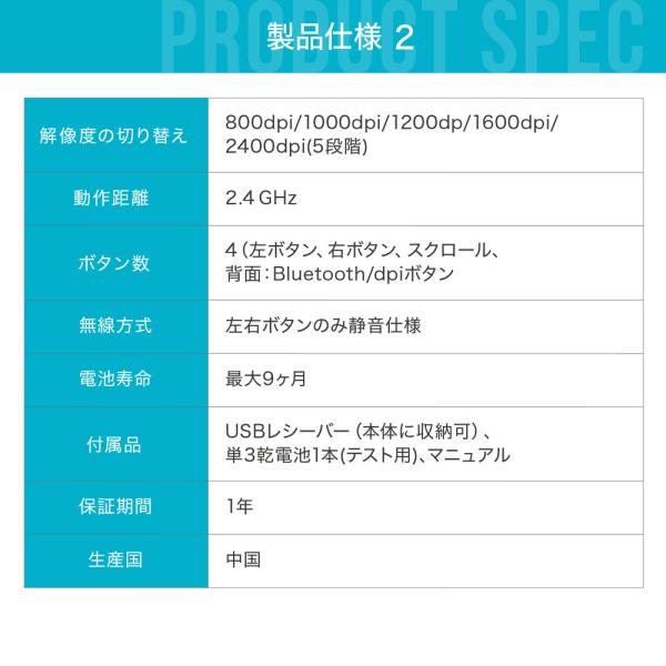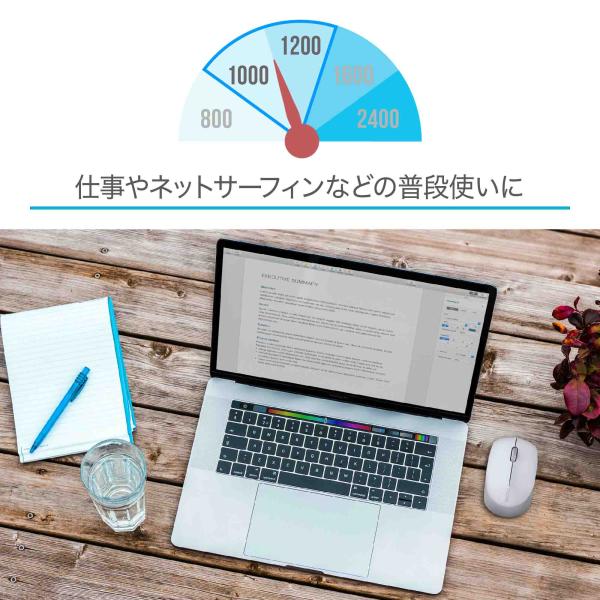マウス表面にあるdpiボタンを押すことで、2400、1600、1300、1000、600dpiの5段階の解像度調整が可能です。