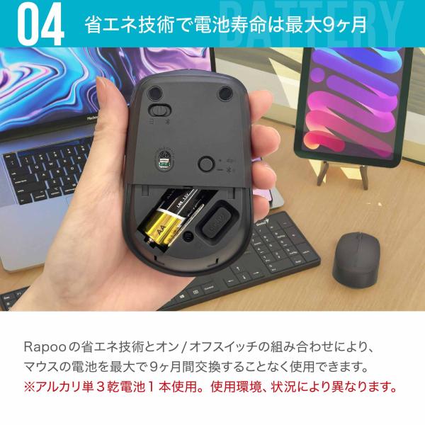 Rapoo MT100G Bluetooth/2.4GHz マルチデバイス対応 静音 ワイヤレスマウス M100G-DG/LG