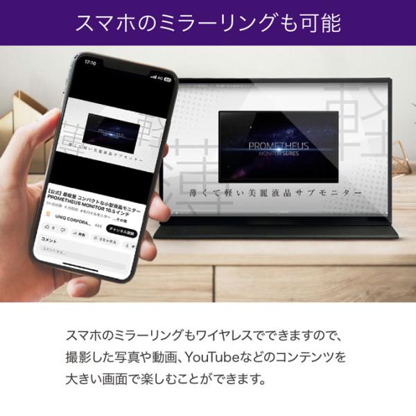 PROMETHEUS CASTは、スマホ・パソコン・タブレットなどのデバイスとワイヤレスで接続できるモバイルモニターです。