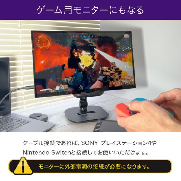 ケーブル接続であれば、SONY プレイステーション4やNintendo Switchと接続して、ゲーム用のモニターとしてもお使いいただけます。