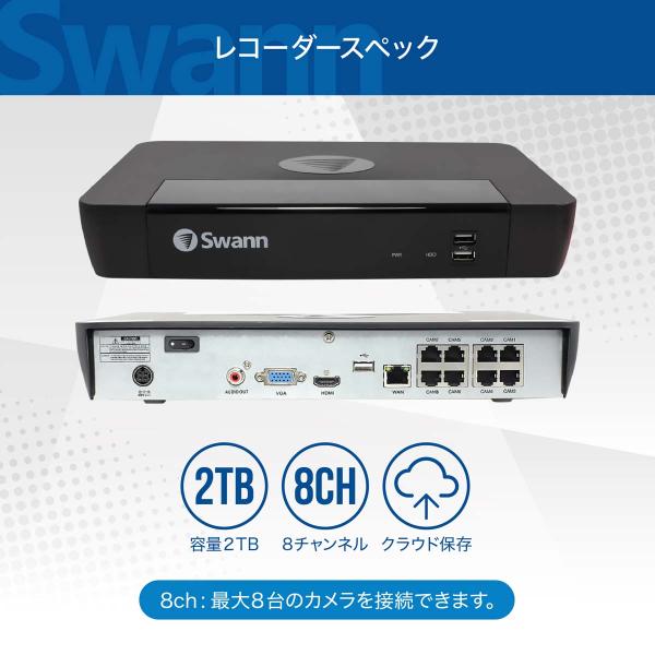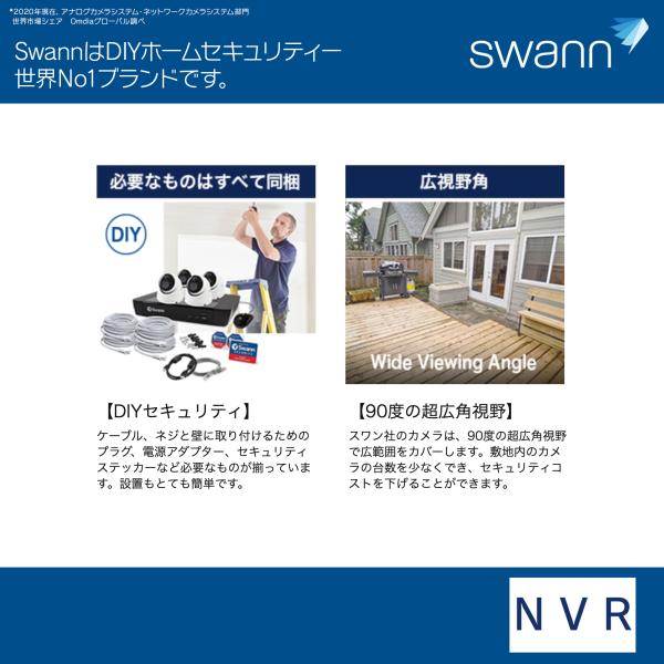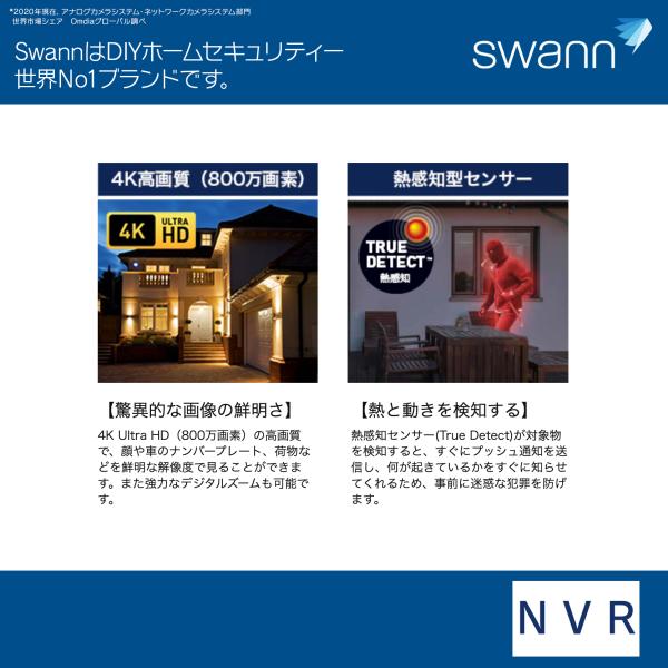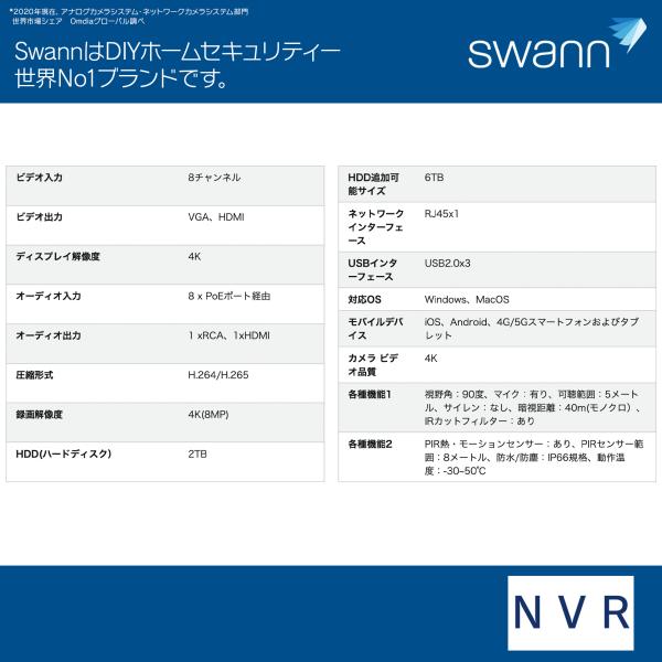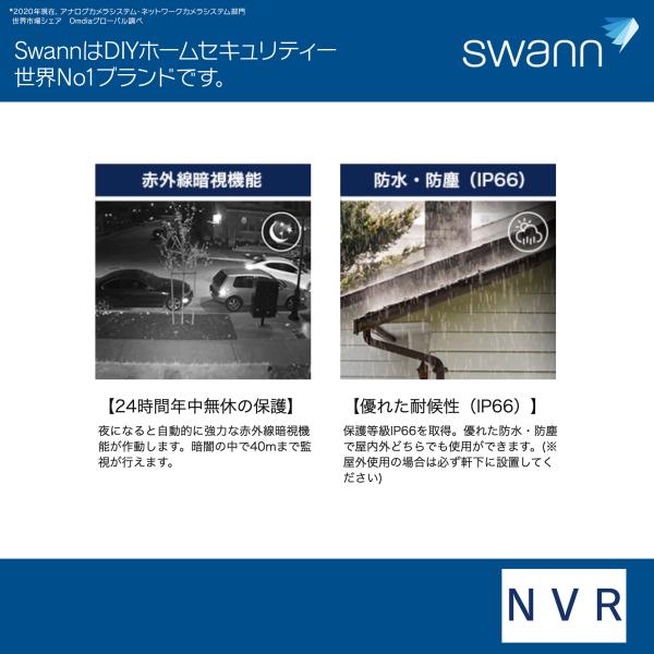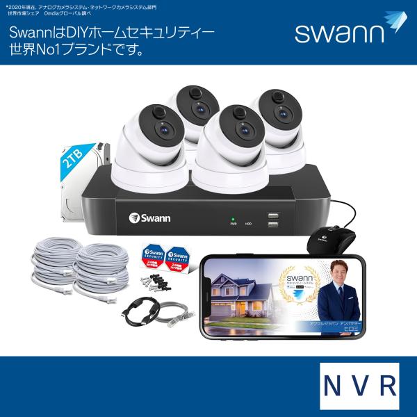 Swann セキュリティカメラ 8CH 4K NVRレコーダー 2TB IP66仕様 屋外対応 防犯カメラ 4個セット SWNVK-UQ1876806D