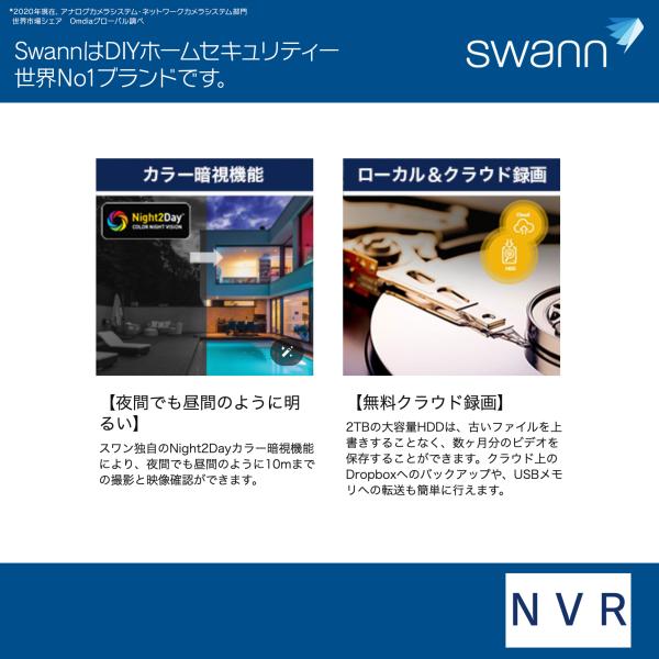 セキュリティコストを下げることができます。スワン独自のNight2Dayカラー暗視機能により