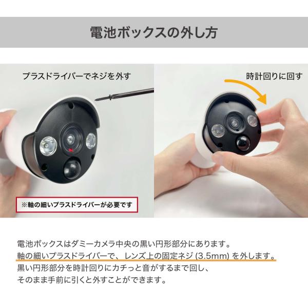 本物のカメラと比べて導入コストも安価で、配線工事は不要。ビス留めで設置できます。