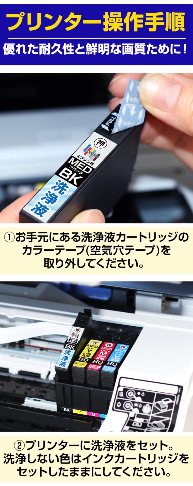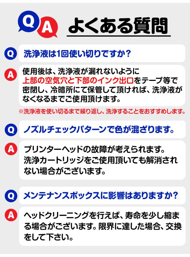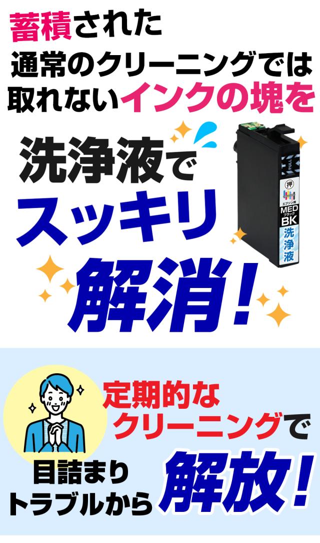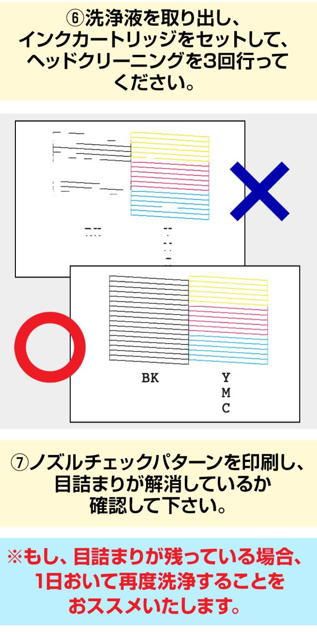 ※洗浄液カートリッジは補助的な商品の為、単純な目詰まりなどの場合、洗浄液で回復するケースもありますが、必ず回復をお約束するものではありません。