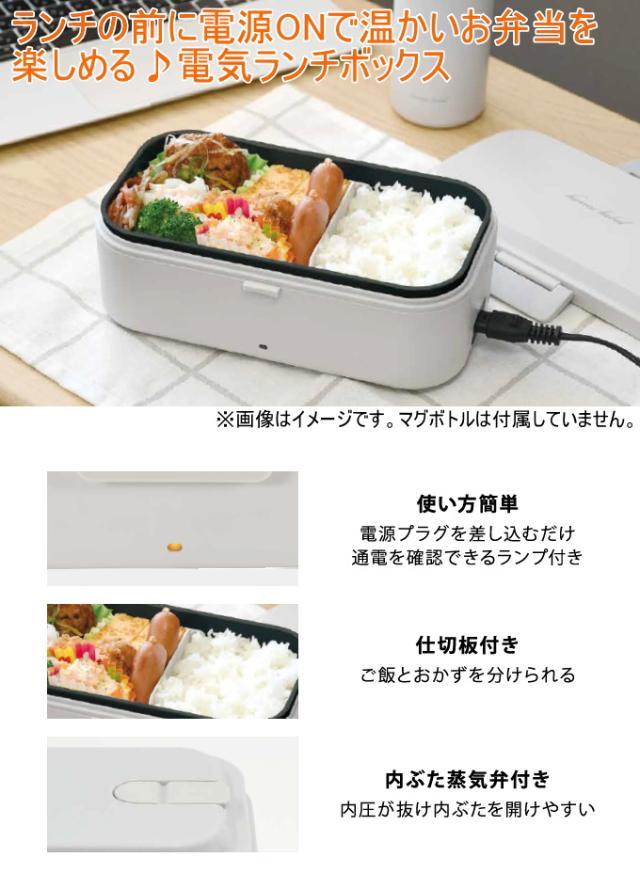 電気で温められるランチボックス。 ランチの前に電源ONで温かいお弁当が楽しめる♪ 内ぶたはシリコーンパッキン付きで汁モレしにくい。 内容器は取り外しできるので洗いやすい。 加熱時間は10〜15分を目安に加熱してください。 (調理物の量や温度、外気温などの条件によって加熱時間は異なります。加熱が足りなかった場合は追加で5分程度加熱してください。) ■その他の弁当箱はこちら↓ 弁当箱 |