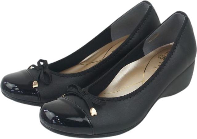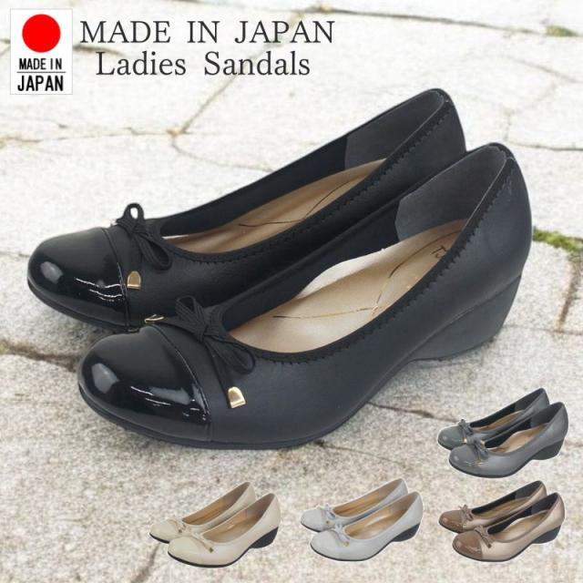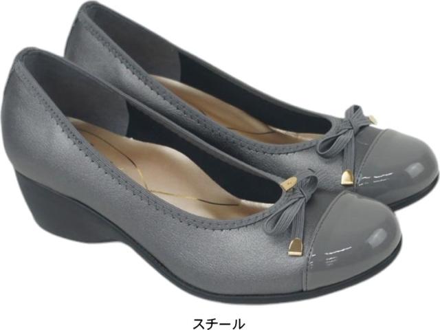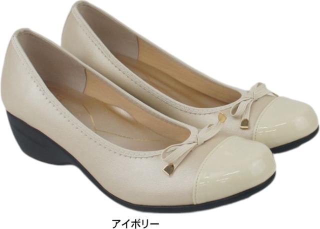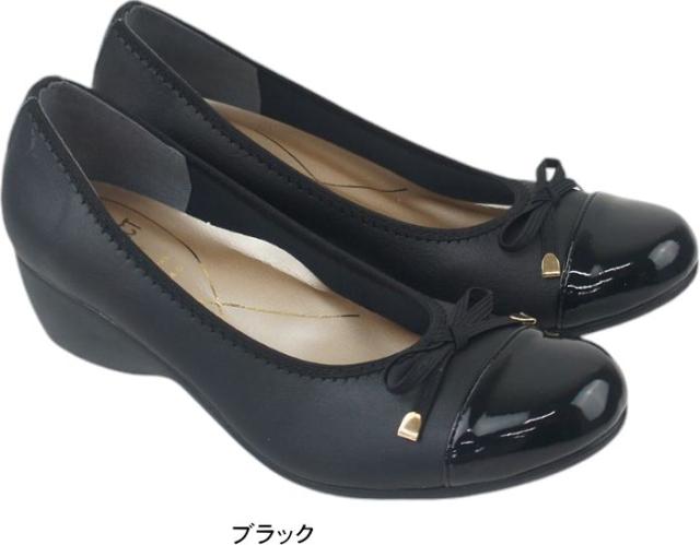パンプス レディース 痛くない 歩きやすい ヒール 黒 靴 ウエッジ ソール リボン飾り 美脚 厚底 ラウンドトゥ 仕事 コンフォート シューズ ファーストコンタクト nc39422