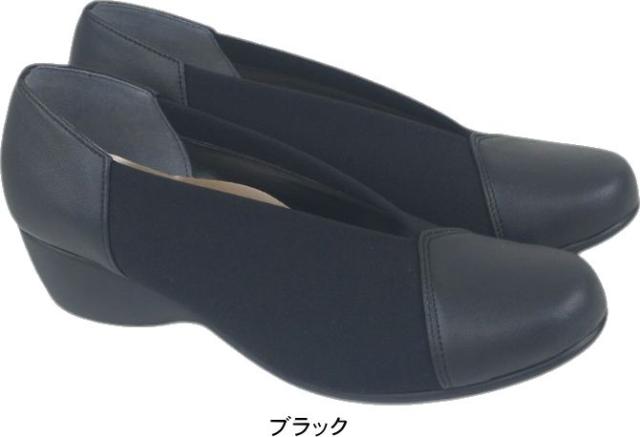パンプス レディース 痛くない 歩きやすい ヒール 黒 靴 ウエッジ ソール Vカット 美脚 厚底 ラウンドトゥ 仕事 コンフォート シューズ ファーストコンタクト nc39428