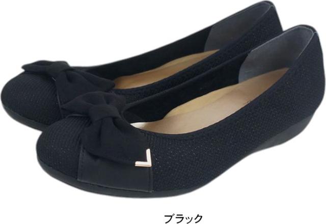 パンプス レディース 痛くない 歩きやすい ローヒール 黒 ラウンドトゥ リボン飾り 靴 フラット ぺたんこ ソール バレエ 仕事 コンフォート シューズ ファーストコンタクト nc39091