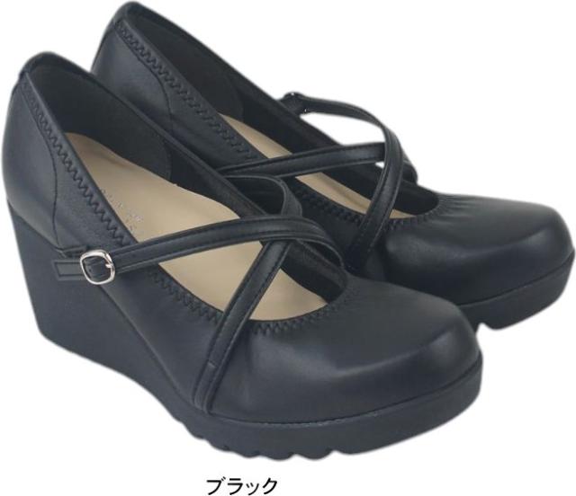 パンプス レディース 痛くない 歩きやすい ヒール 黒 靴 ウエッジ ソール 美脚 厚底 ラウンドトゥ 仕事 コンフォート シューズ ファーストコンタクト nc49608