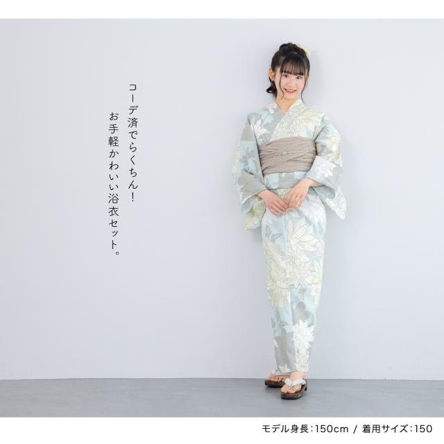 浴衣 セット ジュニア ハイジュニア 女の子 兵児帯 浴衣セット 水色 白 薄黄 薄茶 くすみカラー 花 おしゃれ かわいい レトロモダン 帯 綿 140cm 150cm 送料無料
