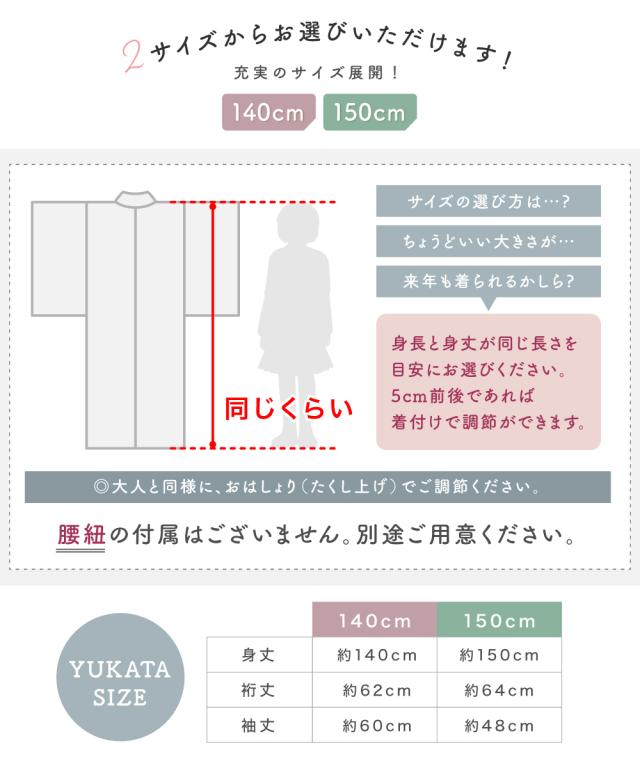 夏のお祭りや花火大会にピッタリなジュニア、ハイジュニア向けの浴衣3点セットです。