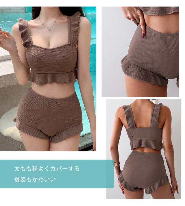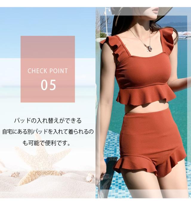 【50 円 OFFクーポン】新作 水着 タンキニ レディース 体型カバー フリル ママ ラッシュガード 20代 30代 40代 50代 上下セット ビキニ セパレート 可愛い 洋服感覚