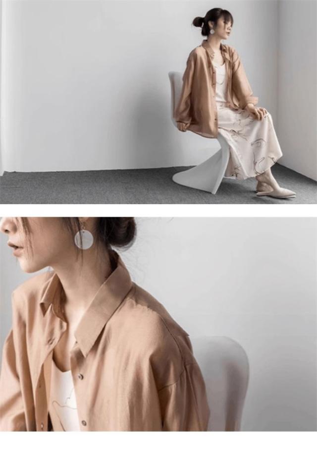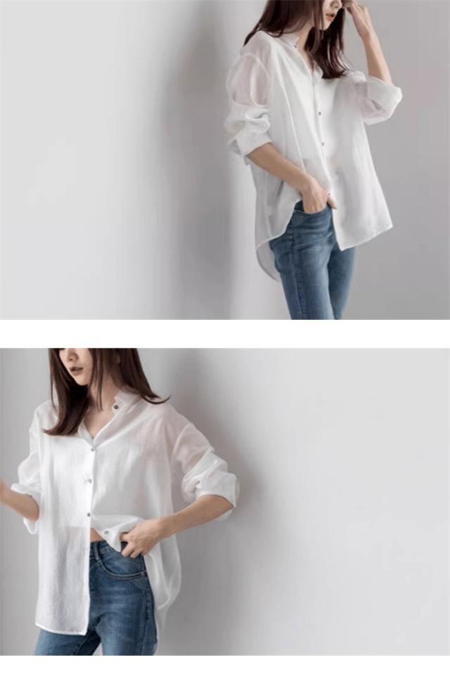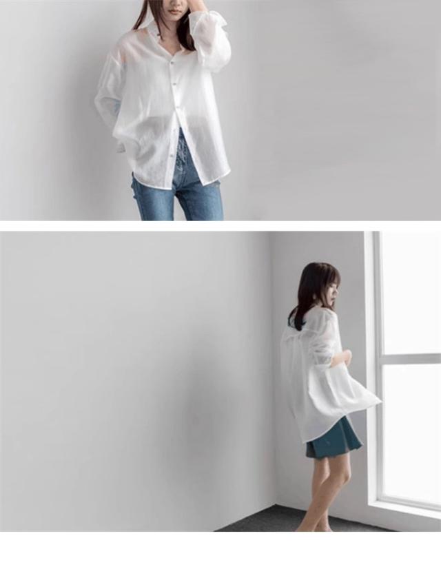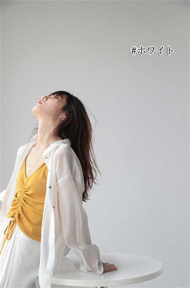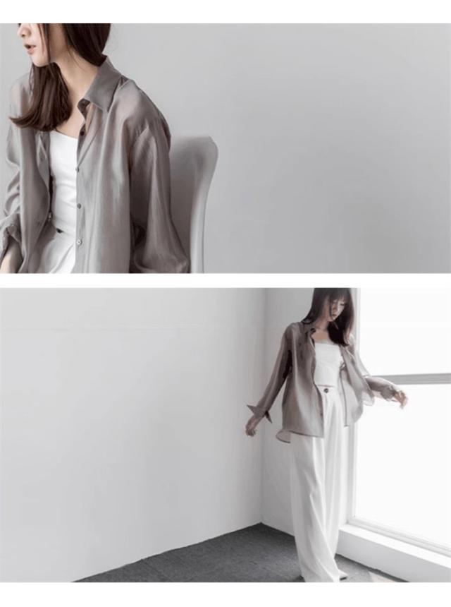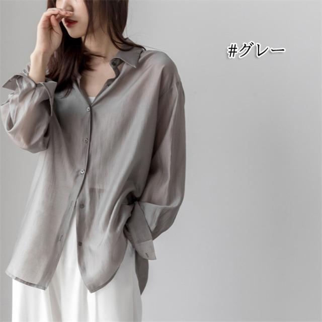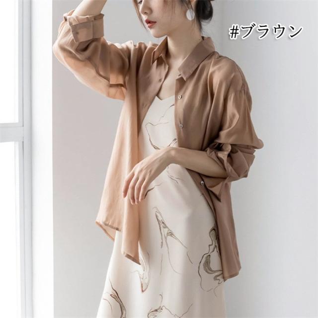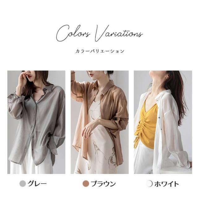 シアーシャツ レディース 夏 長袖 シースルー 大人 日焼け対策 uv対策 体型カバー 薄手 シアー トップス ボタン タレ感 前開き 微透け 透け感 ゆったり カジュアル シャツ ブラウス ホワイト グレー ブラウン dh078x1x1m5