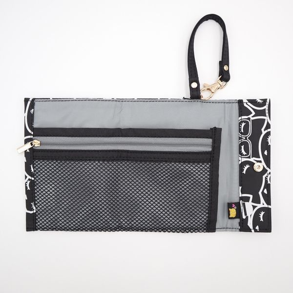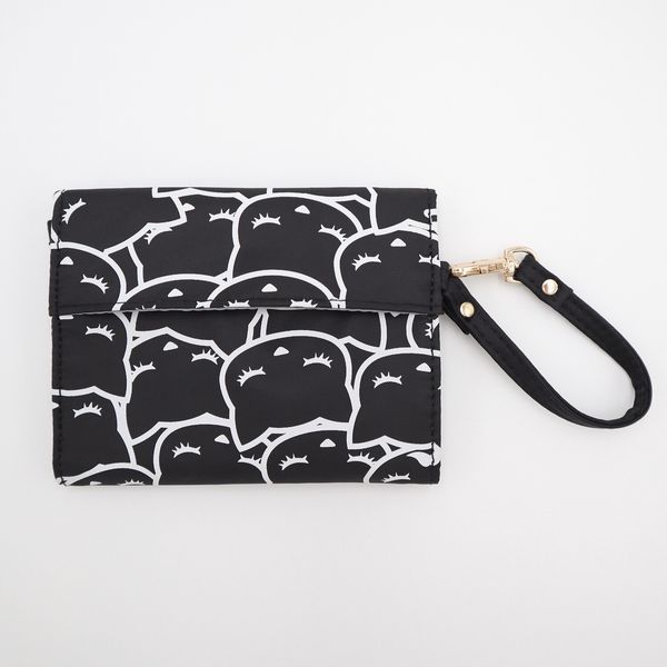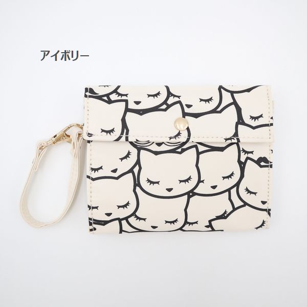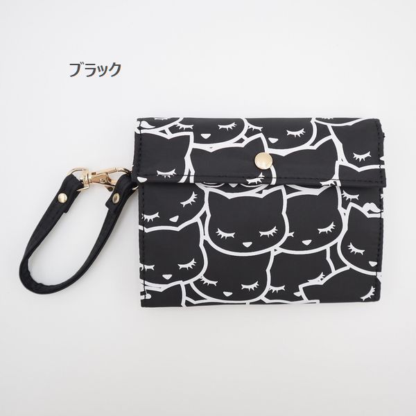 ポーチ レディースバッグ レディースファッション ぎゅうぎゅう ねこ 猫 ネコ 猫好き 3つ折り マスクポーチ コンパクト マチ無し 黒