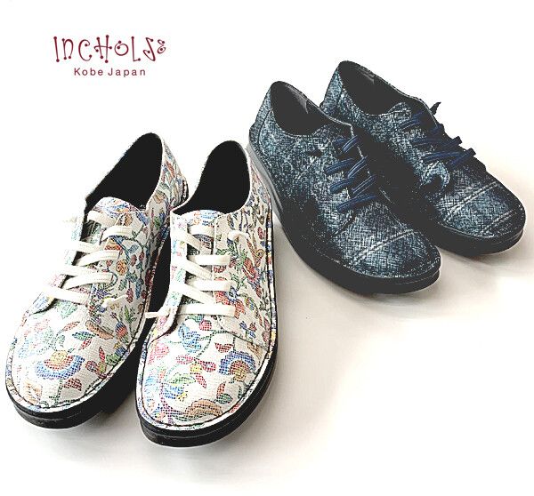 | フラワー加工牛革素材のホワイト、チェック加工豚皮素材のネービー 在庫限りのインコルジェ限定品商品! |