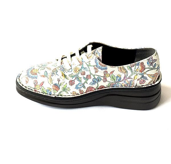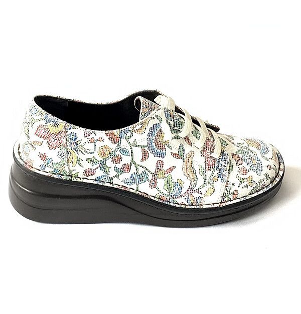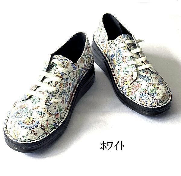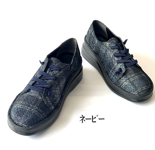 ウォーキングシューズ レディースシューズ レディースファッション 靴 カジュアル フラワー チェック 加工牛革素材 ホワイト ネービー 【送料無料】