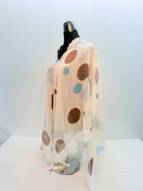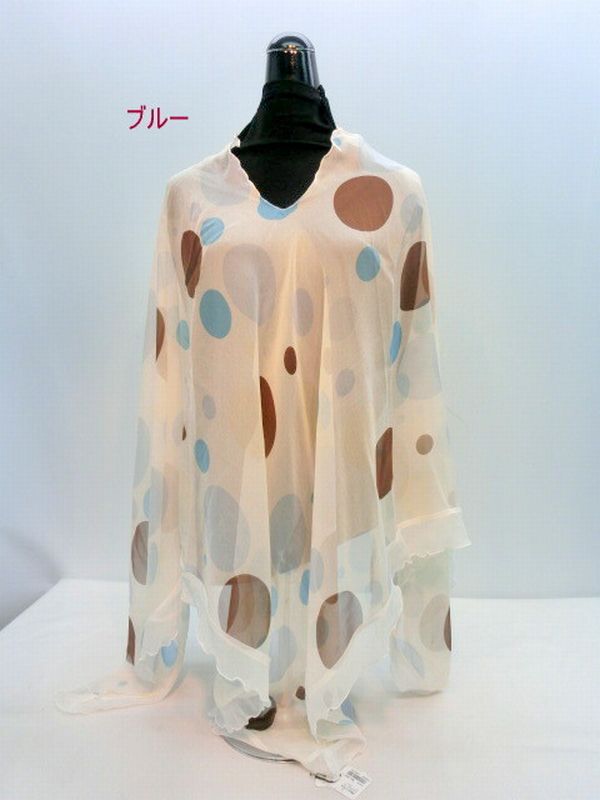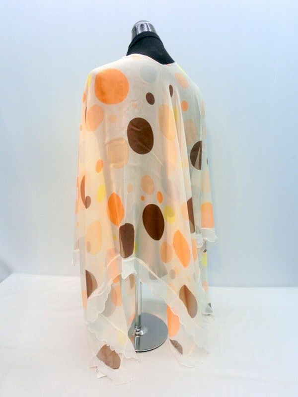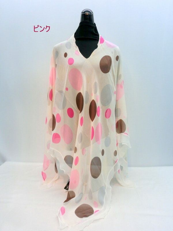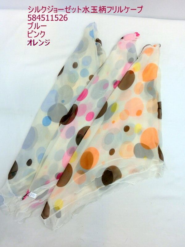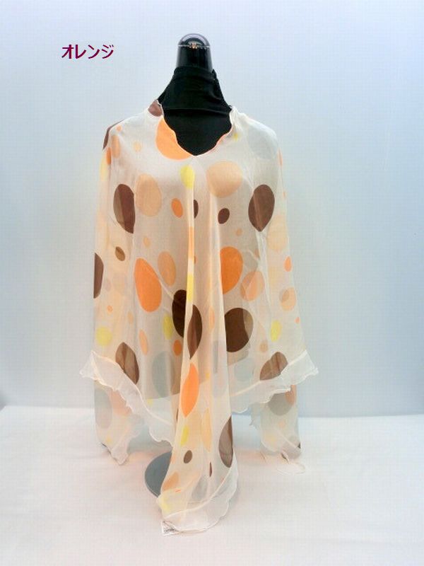 ストール ファッション小物 レディースファッション シルク ジョーゼット 水玉柄 フリルケープ 四角 中心に頭を入れる穴 頭からかぶる 【送料無料】