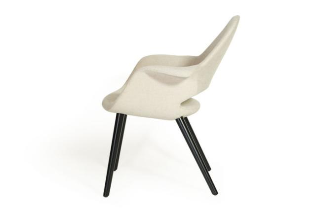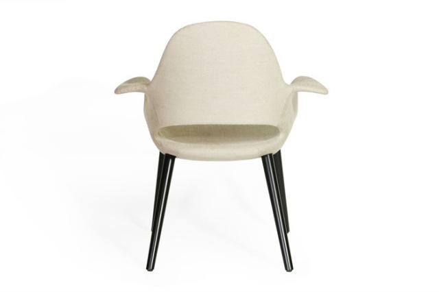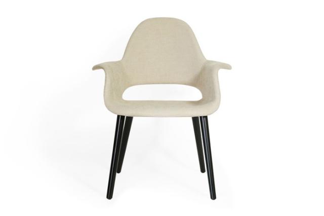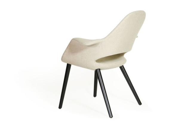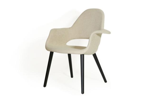 オーガニックチェアは、近代デザイン製品をコレクションすることで他の美術館との差別化を意欲的にはかっていたMoMA(Museum of Modern Art)が、その活動の一環として1940年に開催した「近代家具のオーガニックデザインコンペ」に出品した作品の1つでした。結果、椅子部門で1位となったオーガニックチェアとは、その頃、チャールズ・イームズとエーロ・サーリネンが取り組んでいた、成型合板での大量生産可能な新時代のデザインを実現しようとした本格的な取組みでした。オーガニックチェアはブームの北欧系インテリアとミッドセンチュリーの丁度中間のテイストを持ち、どちらのテイストにもなじむデザインとなっております。