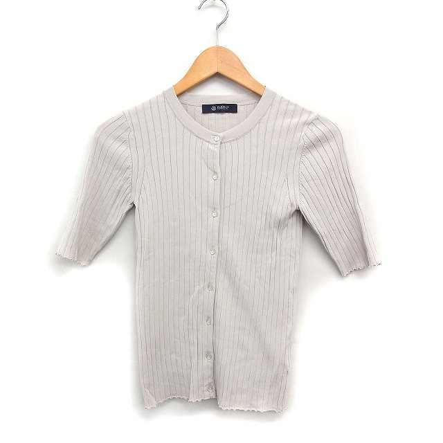 【中古】ナノユニバース nano universe リブ ニット カーディガン 半袖 丸首 無地 36 グレージュ /FT14 レディース