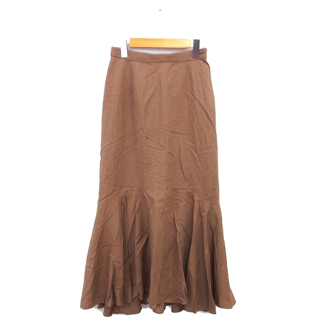 【中古】ルージュヴィフ Rouge vif マーメイド スカート フレア マキシ丈 リネン混 サイドジップ 無地 36 茶 ブラウン