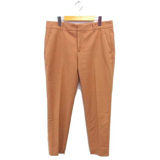 【中古】ザラ ZARA スラックス ストレート スリット コットン混 ジップフライ 無地 40 キャメル /NT35 レディース