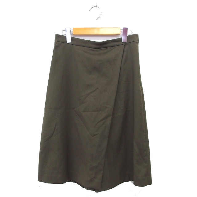 【中古】クミキョク 組曲 KUMIKYOKU スカーチョ ワイドパンツ クロップド サイドジップ フロントクロス 無地 2 カーキ