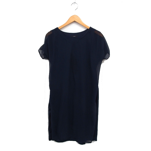 【中古】ロッソ ROSSO アーバンリサーチ シフォン ワンピース 半袖 ひざ丈 丸首 無地 F ネイビー 紺 /FT33 レディース