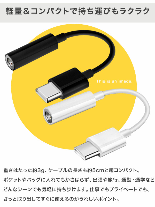 イヤホンジャック非搭載スマホでも有線派に朗報!「3.5mmイヤホン変換アダプター」 \3.5mmイヤホン変換アダプターのここがポイント/ ■どこでもお気に入りの有線イヤホンが使える USB Type-C端子しかないスマホやタブレットでも、 3.5mmステレオミニプラグのイヤホンやヘッドホンをそのまま接続できます。 ■ドライバー不要で簡単接続 面倒な設定やインストール不要、差し込むだけですぐに音楽や動画を楽しめます。 ■軽量&コンパクト設計で持ち運びラクラク わずか約3g・長さ約5cmの超小型設計なので、ポケットやバッグに入れても邪魔になりません。 ■耐久性の高いTPE素材採用 高耐久TPE素材を使用し、日常使いや旅行・出張など様々なシーンで安心して使えます。 【イヤホンジャックがなくても、いつもの音が楽しめる】 スマートフォンやタブレットのイヤホンジャックが省かれてしまった今でも、 「お気に入りの有線イヤホンやヘッドホンを使いたい!」という方にぴったりなのが、 この「3.5mmイヤホン変換アダプター」。 USB Type-C端子しかない最新機種でも、 ステレオミニプラグタイプのイヤホンやヘッドホンがそのまま使える便利なアイテムです。 【設定不要!つなぐだけで即使える手軽さ】 このアダプターの魅力は、何といっても“つなげるだけ”の簡単さ。 専用ドライバーのインストールや複雑な設定は一切不要。 USB Type-C端子に差し込むだけで、すぐに音楽や動画を楽しむことができます。 機械が苦手な方でも安心して使える、シンプル設計です。 【軽量&コンパクトで持ち運びもラクラク】 重さはたった約3g、ケーブルの長さも約5cmと超コンパクト。 ポケットやバッグに入れてもかさばらず、出張や旅行、通勤・通学など、どんなシーンでも気軽に持ち歩けます。 仕事でもプライベートでも、さっと取り出してすぐに使えるのがうれしいポイント。 【耐久性に優れたTPE素材を採用】 毎日使うものだからこそ、耐久性にもこだわりたいところ。 このアダプターは柔軟性と強度を兼ね備えたTPE素材を使用しているので、 曲げやすく断線しにくい設計。長く安心して使えるのも大きな魅力です。 【音楽・動画再生専用のシンプル仕様】 本製品は音楽や動画の再生専用アダプターです。 マイク機能やリモコン操作には対応していませんので、あらかじめご注意ください。 純粋に「聴く」ことに特化した、シンプルで使いやすいアイテムです。 【スタッフvoice】 スマホに挿すだけでお気に入りの有線イヤホンが復活! 実際に使ってみると、音質もクリアで、動画や音楽鑑賞が快適です。 軽量&コンパクトなので、毎日持ち歩いても全く邪魔になりません。 マイクやリモコン操作ができない点は用途によって注意が必要ですが、 音楽や動画を楽しむだけなら十分満足できるアイテムです。 【商品特徴・キーワード】 USB Type-C イヤホン変換アダプター 3.5mmステレオミニプラグ変換 イヤホンジャック非搭載 スマホ対応 有線イヤホン 変換ケーブル USB-C オーディオアダプター 高音質 イヤホン 【仕様】 重量:約3g ケーブルの長さ:約5cm コネクタ形状:3.5mmステレオジャック/USB Type-C 【注意事項】 ※本商品には説明書が付属しておりません。使用方法に関しては商品ページをご参照ください。 ※商品画像はご覧になっているモニターやPCなどの環境、解像度により、 実物と多少カラーが異なる場合がございます。色味やサイズが異なるなどのクレームはご対応致しかねますので、予めご了承ください。 ※輸送中に外装に傷やへこみが起こる場合がございますが、商品に影響はございませんので、予めご了承のもとお買い求めください。 ※本商品は海外からの輸入品ですので、細かい傷や汚れなどある場合がございます。予めご了承のもとお買い求めください。 ※こちらの商品は安価にご提供するため、簡易包装、簡易パッケージとなっております。 ※製造時期によって一部デザインが変更になる場合がございます。予めご了承のもとお買い求めください。 ※本商品を使用した事による、直接もしくは間接的に生じた損害、事故、怪我、故障について当店は一切の責任を負いません。 ※本商品はすべての環境、機器との接続を保証するものではございません。一部の機器では環境、 相性等により接続できない場合がございます。予めご了承ください。 ※本商品は小さな部品を使用しております。誤飲等の危険性があるため、 お子様がご利用になる場合は大人の方と一緒にご使用頂き、お子様の手の届かない場所で保管してください。 ※音楽・動画再生専用のアダプタとなります。マイク・リモコン操作には対応していません。ご注意ください。 |