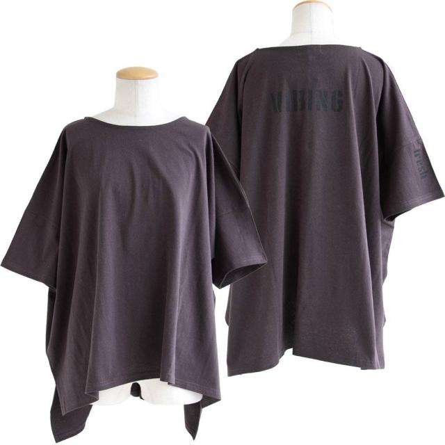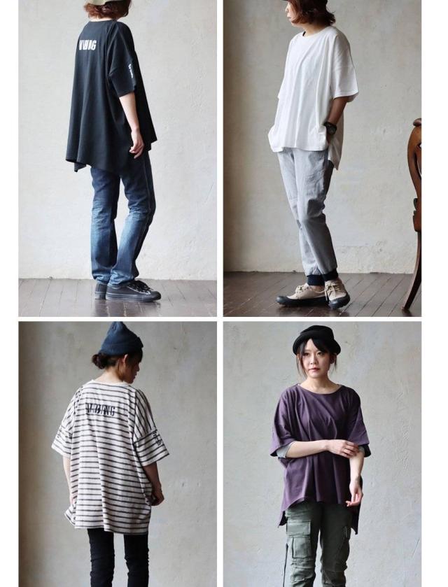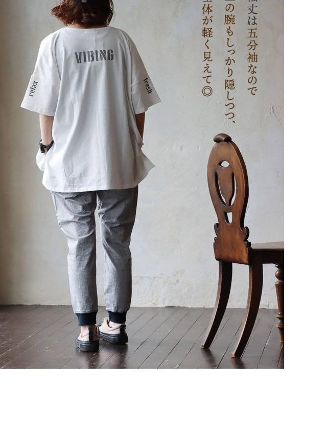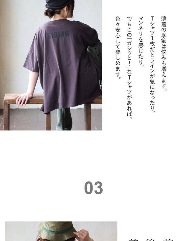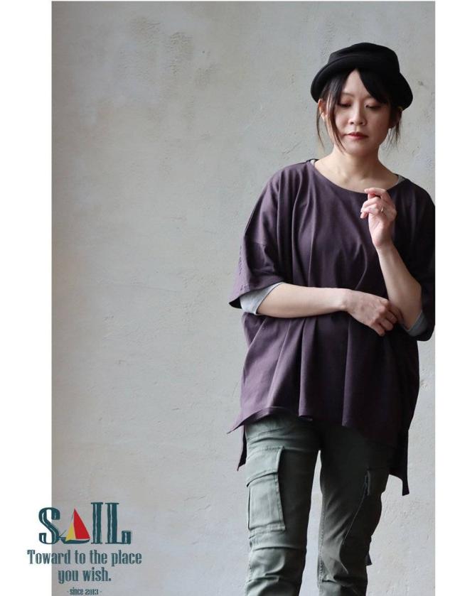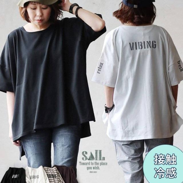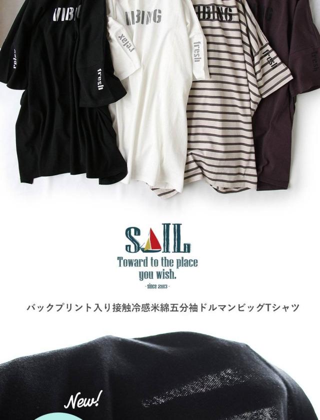 【メール便50】 tシャツ 着やせ ゆったり ワイド スッキリ ティーシャツ 五分袖 半袖 レディース 夏 綿100% コットン かっこいい ロゴ プリント お尻 二の腕 隠れ 涼しい カバー ドロップショルダー 重ね着 細見え パティ SAIL セイル
