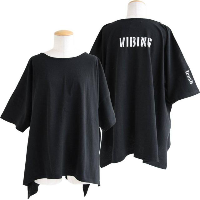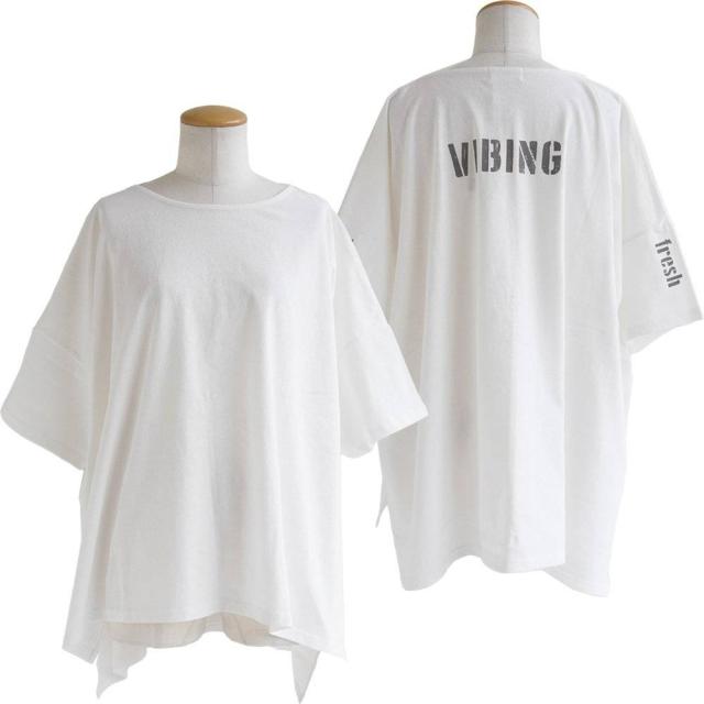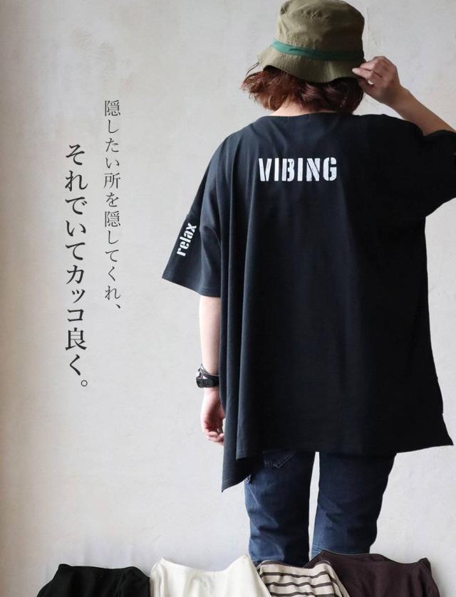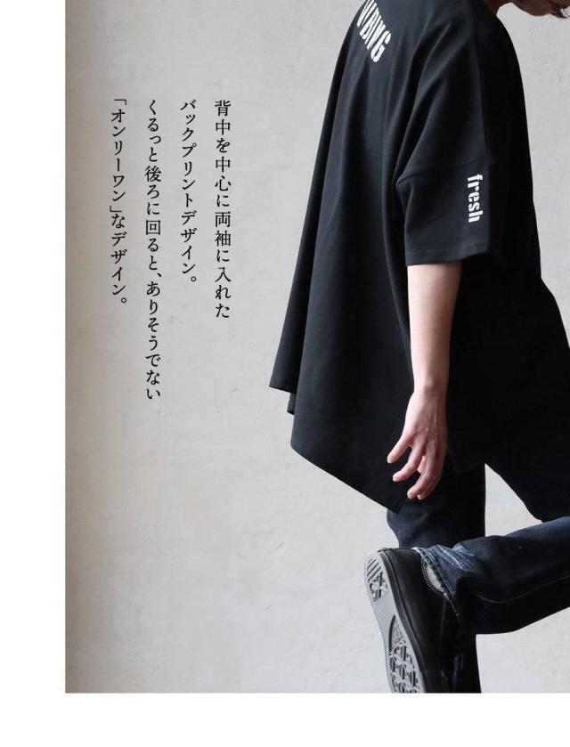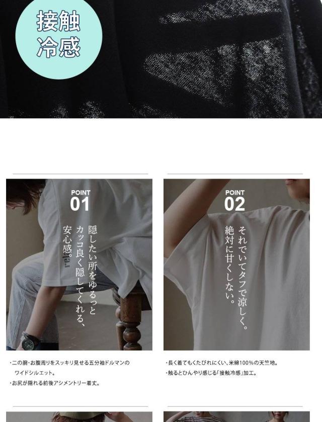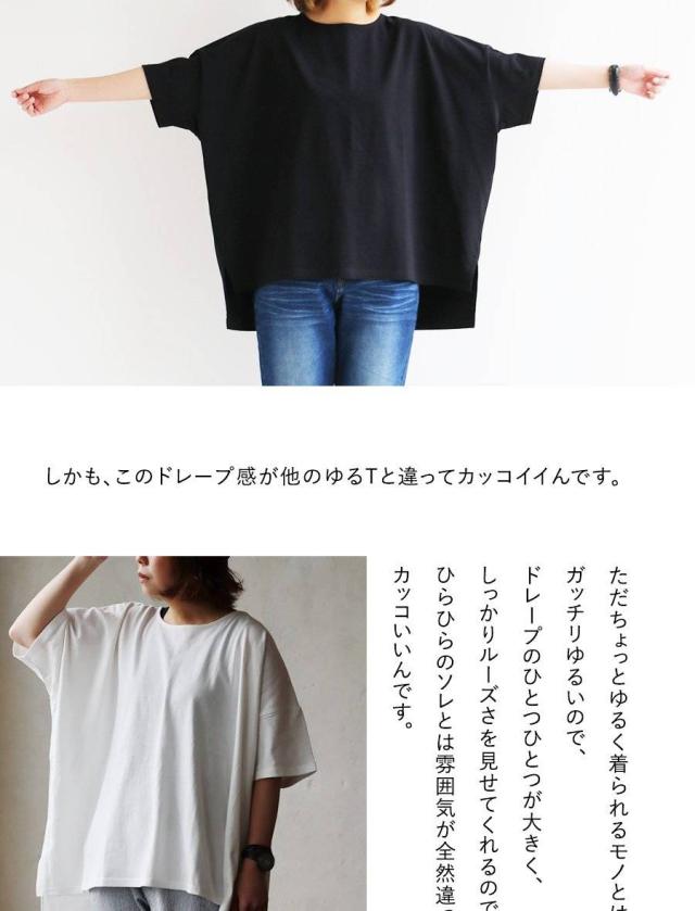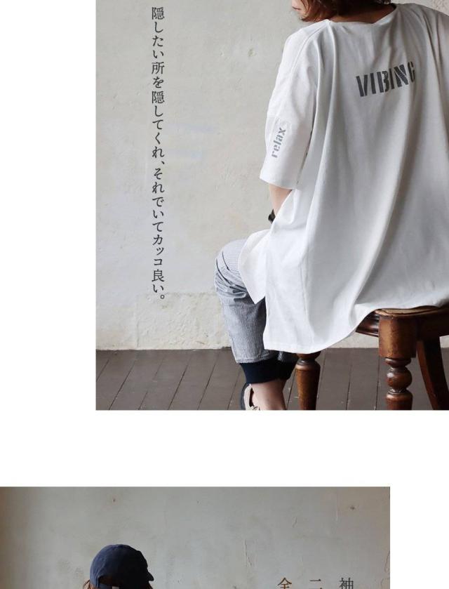 tシャツ 着やせ ゆったり ワイド スッキリ ティーシャツ 五分袖 半袖 レディース 夏 綿100% コットン かっこいい ロゴ プリント お尻 二の腕 隠れ 涼しい カバー ドロップショルダー 重ね着 細見え パティ